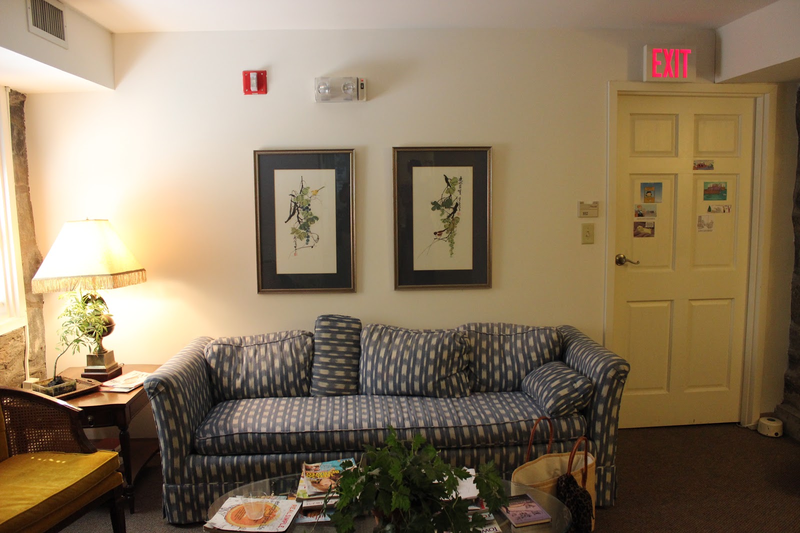 We tried to disguise that door by painting it the same color of the walls and even added a picture on it. We are nothing if not clever.