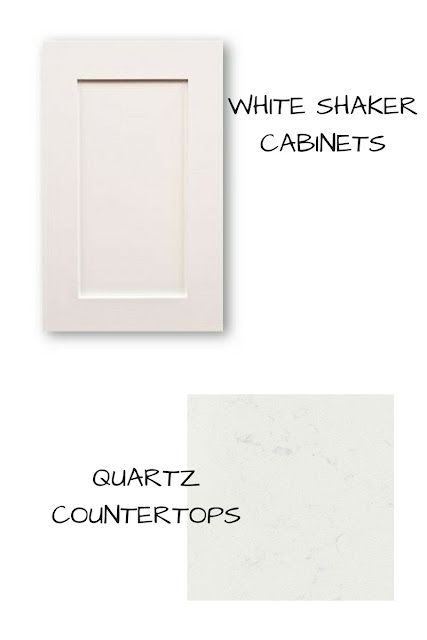 White with subway tile and wood accents....along with shaker cabinet doors which are so popular now!  Damn how did I know all that....ha ha.