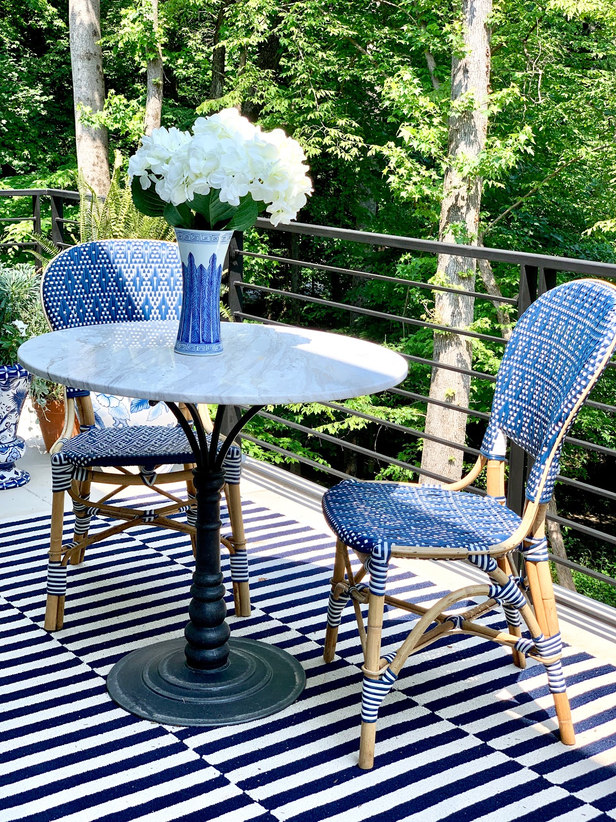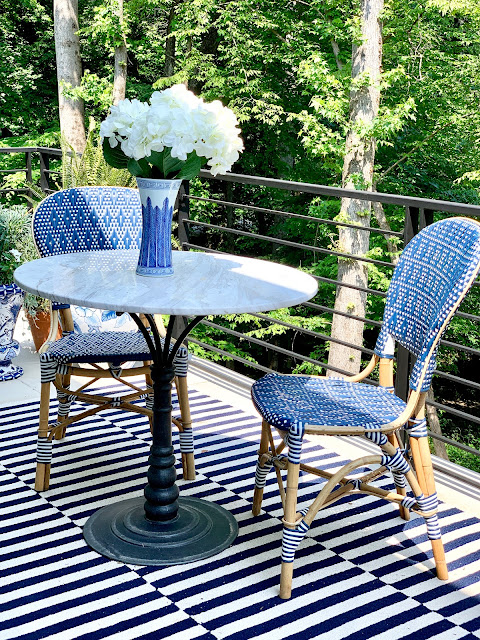 Erin Gates [Elements of Style] did the outdoor space using Frontgate and her signature color....blue.