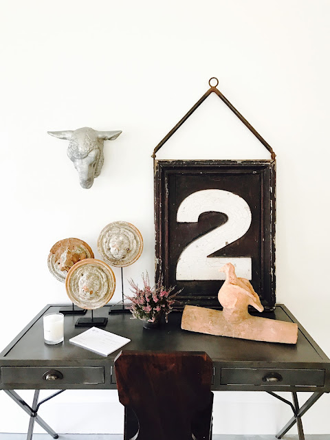 I did recently redo my living room to make it less stuffy, though: out came an Oriental rug and I replaced it with a seagrass one, and on one wall I have an oversized distressed mirror leaning casually to bring in a little height, while next to it is a real hodgepodge of art—different sizes of paintings and items I’ve collected over the years, but even stuff from Ballard’s Back Room—that my husband was patient enough to hang, gallery-style.