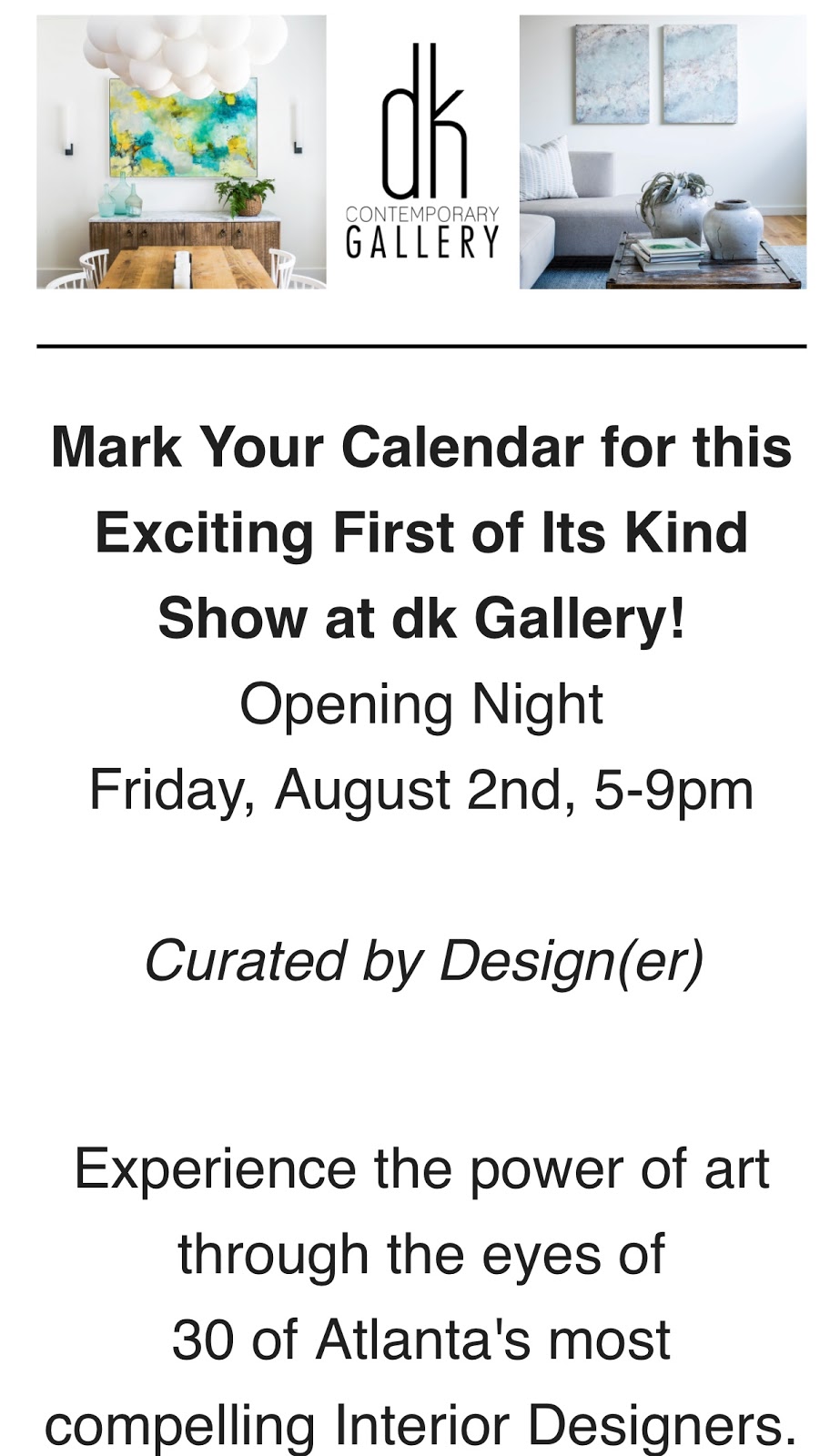 In other news....August 2nd I will be in Marietta at DK Gallery curating a piece of art along with a few other designers!